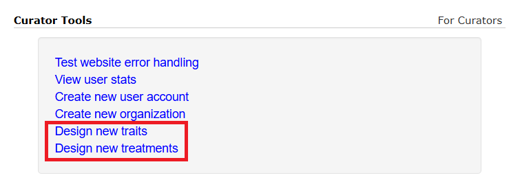 For databases where the user has greater control, we have an interface to allow curators to add new traits or treatments.